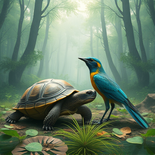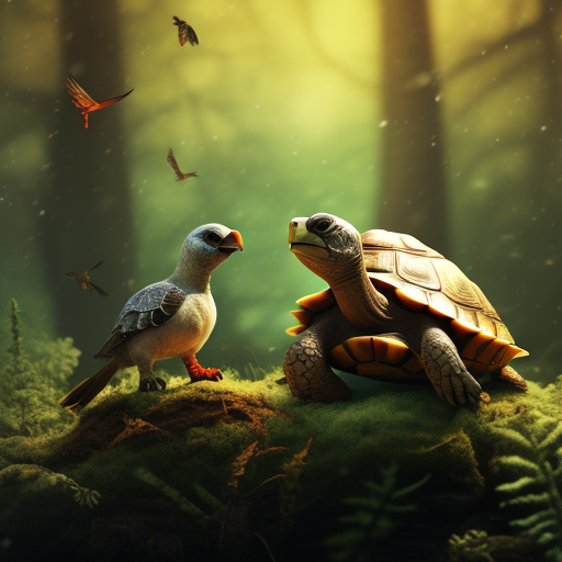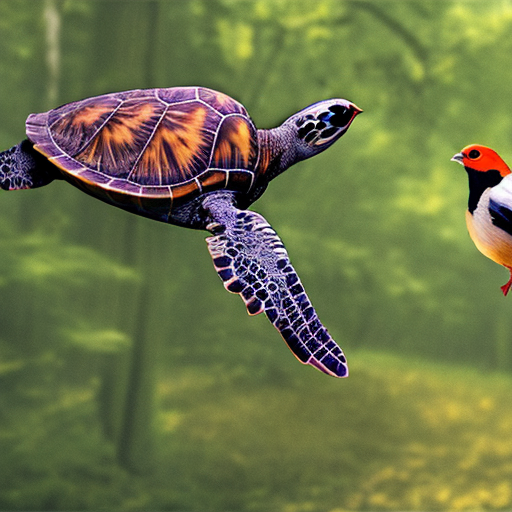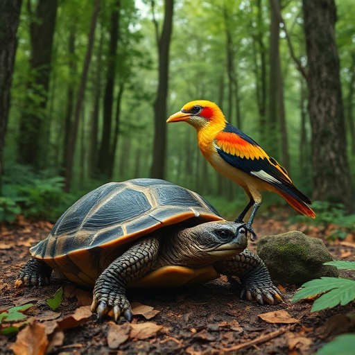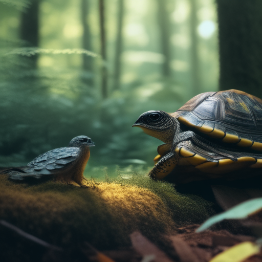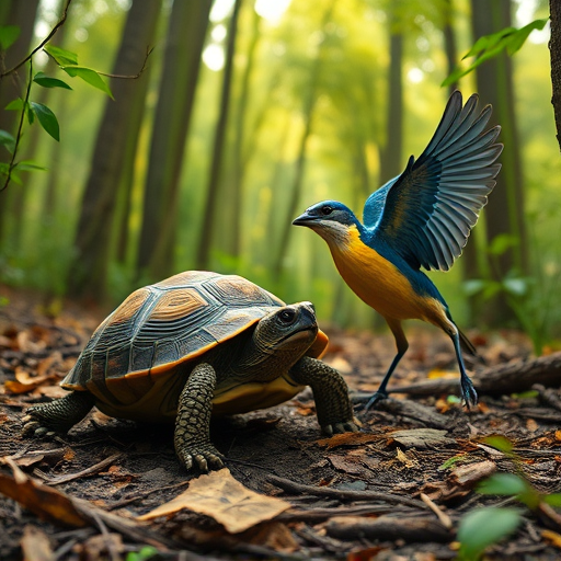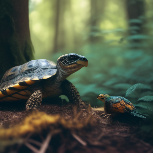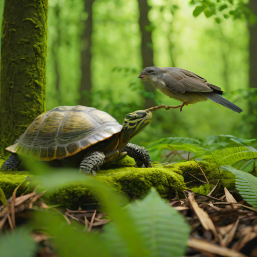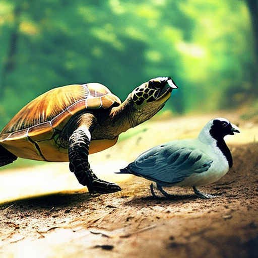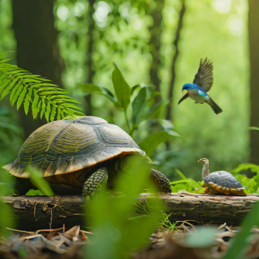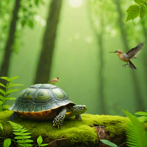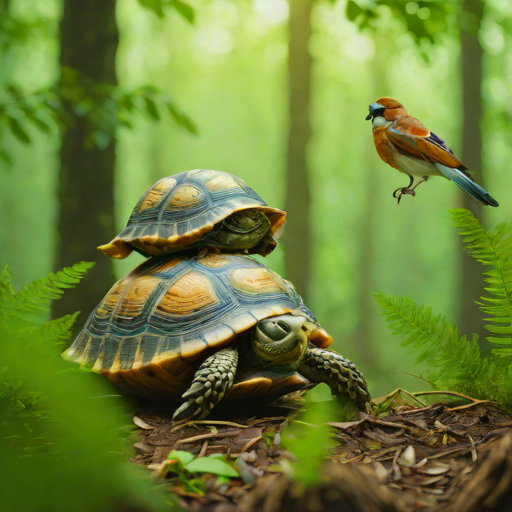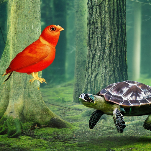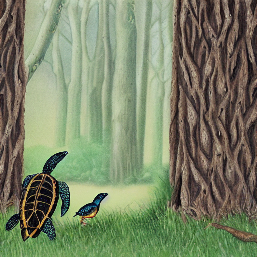 Prompt: "a turtle and a bird together in a forest" | Resolution: 512 × 512 | Replicates: 5 timed runs